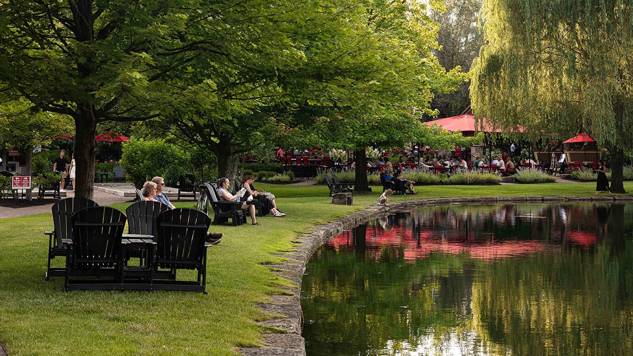 4. Enjoy a bottle of wine with your partner or friends while sitting in the Adirondack chairs next to Gervasi’s lake and watching the swans and other wildlife.