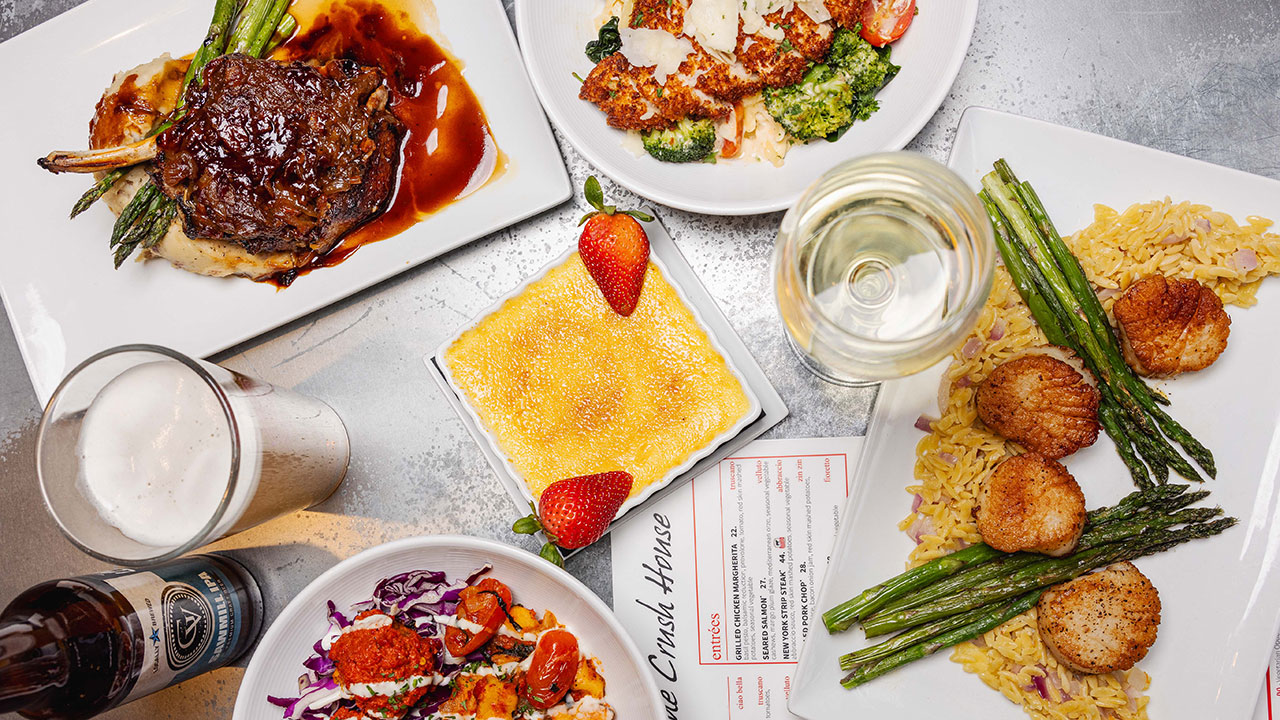 The selections for scrumptious menu selections include salads such as Greek Salad, Strawberry Salad, and the bestselling house special Crush House Salad. The delicious pasta dishes include a Meatball Linguine, Short Rib Gnocchi, and Greek Chicken Orzo. They offer entrées that will match any appetite and include Grilled Chicken Margherita, Seared Salmon, New York Strip Steak, and Grilled Pork Chop.